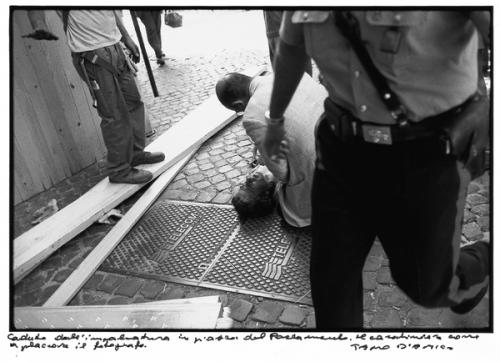 Roma, 2005. Operaio caduto dall’impalcatura in Piazza del Parlamento. Il carabiniere corre a placare il fotografo